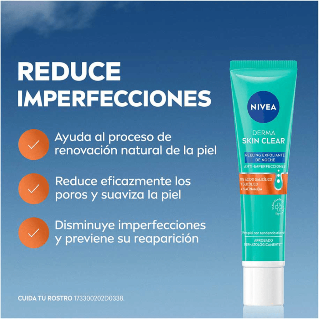 - El Exfoliante de Noche se utiliza como último paso de la rutina nocturna Derma Skin Clear.